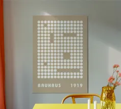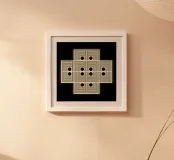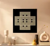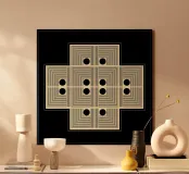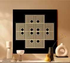 "Pattern of Emergence" è un'opera d'arte geometrica astratta che esplora come la bellezza complessa nasca da inizi semplici. L'opera presenta piccole sezioni ripetute che si combinano per formare un disegno più grande e intricato. I punti neri fungono da fulcro, evidenziando i punti di connessione e di transizione. L'opera suggerisce che i grandi disegni non appaiono e basta, ma emergono passo dopo passo, quando le parti più piccole lavorano insieme. Per questo motivo è un'opera d'arte da parete moderna molto interessante.