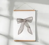 Scopri la nostra stampa artistica incorniciata in legno "Schleife" di KRUTH DESIGN, un'aggiunta elegante per la tua camera da letto. Con un design unico che rappresenta un elegante fiocco, questa opera d'arte porta un tocco di stile e raffinatezza, perfetta per chi cerca un decor moderno e minimalista.