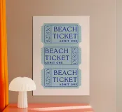 Un biglietto che vi porta dritti alla sensazione di estate: Questo design minimalista di ispirazione retrò ricorda i vecchi biglietti del cinema, ma solo per il mare. Con un design a caratteri cubitali in blu marino, ricorda le giornate in spiaggia, la caccia alle conchiglie e i tramonti. Ideale per gli appassionati di retrò, per gli amanti della costa o come decorazione elegante per la casa o l'appartamento di vacanza.