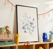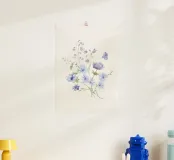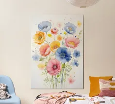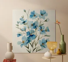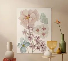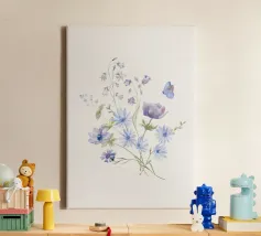 Delicato, rilassante e poetico: questo acquerello floreale con un tenue blu-violetto, delicati fiori e una farfalla porta in ogni casa la magia dei momenti di tranquillità nella natura. Ideale come murale in soggiorno, in camera da letto o nella stanza dei bambini - perfetto per gli amanti dell'arte botanica con una composizione di colori delicati e un aspetto rilassato.