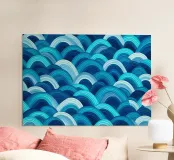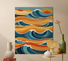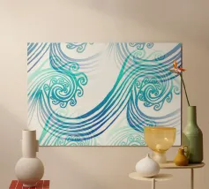 Un audace motivo astratto con un tocco di energia dinamica che simboleggia il movimento e la fluidità. Colori vivaci che evocano temi come l'acqua, la vita e il movimento. Una fusione innovativa di tradizione e modernità per interni contemporanei e minimalisti. Un linguaggio visivo unico che supera i confini culturali.