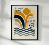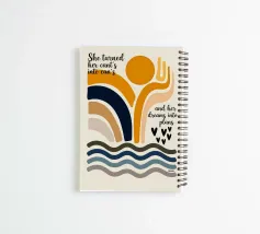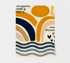 Un design moderno con un messaggio positivo: forme astratte in colori caldi e il messaggio ispiratore "She turned her can't into can's and her dreams into plans". rendono questo motivo il compagno ideale per poster, quaderni, tazze e altro ancora. Per chiunque voglia mostrare la propria motivazione con stile.