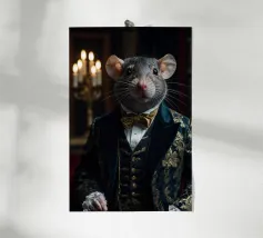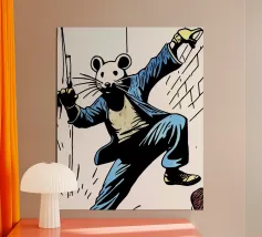 Comical illustration of a rat crazed with life and running from the shithouse, as a parody of the famous urban expression.