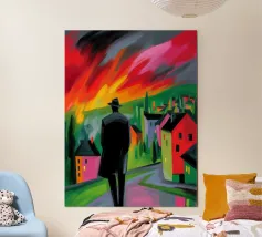 Quest'opera d'arte presenta una sorprendente giustapposizione di colori e monocromia, creando un racconto di contrasto e contemplazione. Questo disegno artistico conferisce una profondità intrigante a qualsiasi ambiente, invitando gli spettatori a riflettere sulla storia che lo sottende. Perfetto per creare un punto focale negli spazi contemporanei, offre una visione unica che stimola la conversazione e l'immaginazione. Aggiungete un tocco di introspezione al vostro arredamento con questo pezzo coinvolgente e stimolante.