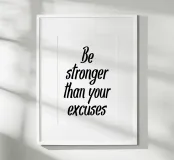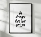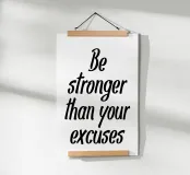Superate i vostri limiti con "Be Stronger Than Your Excuses". Questo pezzo motivazionale serve come promemoria quotidiano per rimanere disciplinati, agire e superare gli ostacoli sulla via del successo. Perfetto per l'ufficio, la palestra o lo spazio personale in cui avete bisogno di un po' di motivazione in più.