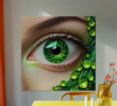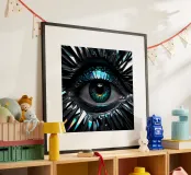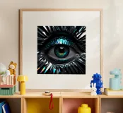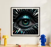 "Silver Eye" è un'opera d'arte digitale in precisa grafica computerizzata. L'occhio centrale brilla in un colore argento metallico, circondato da toni blu freddi e sottili riflessi. I dettagli in filigrana e i contorni netti conferiscono all'immagine un'aura futuristica, quasi mistica. La tecnologia digitale enfatizza il gioco di luci e strutture, facendo apparire l'occhio come una meraviglia tecnica. "Silver Eye" simboleggia chiarezza, osservazione e innovazione: un'opera d'arte moderna che combina armoniosamente tecnologia ed estetica.