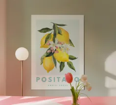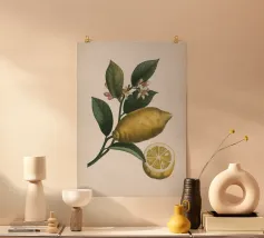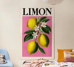 Poster botanico raffigurante limoni vivaci su sfondo rosa, ideale per decorare cucina, soggiorno o sala da pranzo. Stampa di alta qualità su carta premium, perfetta per un tocco fresco e naturale alla casa senza personalizzazione.