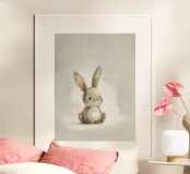 Simpatico coniglietto marrone seduto su uno sfondo morbido poster