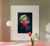 WPAP (Wedha's Pop Art Portrait) è uno stile artistico geometrico, vibrante e colorato che enfatizza gli angoli acuti e i contrasti di colore. Un ritratto di Sinéad O'Connor in stile WPAP presenterebbe la sua sorprendente struttura facciale con forme spigolose e taglienti in colori vivaci e contrastanti. La sua caratteristica testa rasata e il suo sguardo intenso sarebbero accentuati da audaci motivi geometrici. L'opera d'arte catturerebbe la sua profondità emotiva e il suo spirito ribelle, riflettendo la sua eredità di musicista e attivista senza paura.
