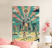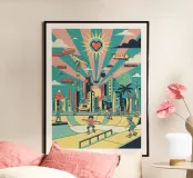 Pour chambre d'enfant , affiche illustré et dessiné représentant le skate