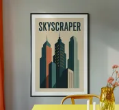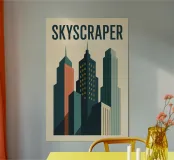 Grattacieli stilizzati dai colori intensi per un'immersione grafica nello skyline moderno. Questo poster rende omaggio all'architettura verticale e al ritmo delle grandi città, con la sua combinazione di potenza architettonica ed eleganza minimalista.