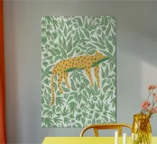 Questo leopardo dorato si appisola su un ramo d'albero, circondato dal fogliame verde della giungla, in una scena giocosa ispirata al safari. Perfetto per ravvivare le camerette o i bagni dei bambini. Disponibile anche su coperte, asciugamani, cuscini e tende da doccia in pile: l'ideale per un divertente look da giungla coordinato.