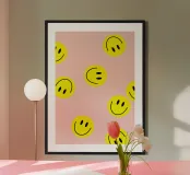 Porta gioia e spensieratezza in casa tua con questa stampa art print incorniciata. Il design "Smiley Flying" di Hej Ibiza by Ute Arnold aggiunge un tocco vivace e giocoso a qualsiasi stanza, perfetto per un ambiente informale.