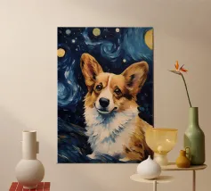 Un piccolo e sciocco cane Pembroke Welsh Corgi che fa gli occhi dolci in un ritratto pittorico