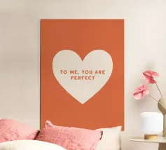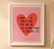Pinker Hintergrund mit rotem Herz und schwarzer Schrift: "Ho così tanto amore per te nel mio cuore che non ci sta".