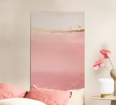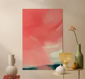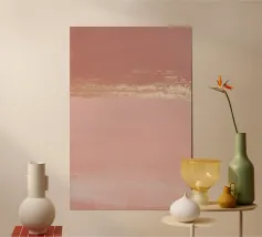 Questa opera d'arte è una delicata composizione astratta costruita con lavaggi stratificati di rosa caldo, toni corallo e sottili riflessi crema. Le delicate trame dei pennelli e le sfumature morbide creano un senso di profondità e di movimento silenzioso, evocando l'atmosfera piuttosto che la forma. La tavolozza sobria e le transizioni morbide invitano alla calma contemplazione, consentendo allo spettatore di sperimentare il colore come emozione. Minimale ma espressiva, l'opera incarna equilibrio, calore e serenità, rendendola ideale per interni moderni, spazi di benessere e stampe artistiche di grande formato.
