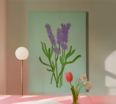 Un dipinto a pastello dai toni delicati e dalla texture morbida raffigurante un singolo fiore di lavanda. La palette leggera e ariosa conferisce un tocco romantico e rilassante a qualsiasi ambiente. La composizione minimalista e i colori sognanti lo rendono perfetto per gli interni in stile scandinavo, gli arredi femminili e gli amanti della moderna arte botanica da parete. Un'opera serena che aggiunge un tocco di natura e di sobria eleganza alla tua casa.