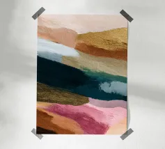 Pennellate strutturate nei toni del rosa, della salvia e della sabbia evocano paesaggi naturali. Una composizione tattile e rilassante che incarna il calore del minimalismo astratto.