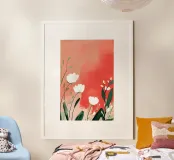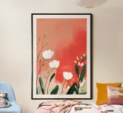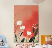 Una composizione floreale minimalista in cui delicati fiori bianchi si stagliano sui toni caldi del corallo e del blush. Le pennellate delicate e i verdi tenui evocano la crescita, l'ottimismo tranquillo e la bellezza del dispiegarsi al proprio ritmo. Quest'opera d'arte trasmette un senso di tenerezza e rinnovamento che la rende una presenza calma ed edificante per interni moderni, scandinavi o in stile soft.