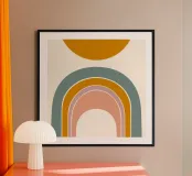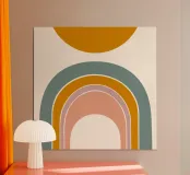 Il design stilizzato del sole e dell'arcobaleno crea un legame armonioso tra natura e arte astratta. Le linee chiare e la composizione equilibrata conferiscono al motivo un'eleganza moderna che si adatta a diversi spazi abitativi.