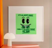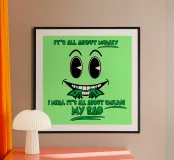 Uno scherzo satirico sulla necessità del denaro, con un'inquietante faccia sorridente retrò che rappresenta ironicamente il pedaggio della caccia al denaro, con tanto di ghigno ornato di banconote tra i denti.