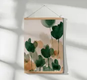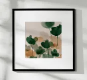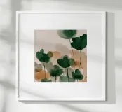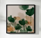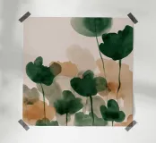 Un'astrazione stratificata di fogliame lussureggiante e sovrapposto in verdi profondi, ocra caldi e neutri morbidi. Il gioco di trasparenze e forme evoca le trame sfumate di una foresta sotterranea, offrendo una presenza tranquilla e organica a qualsiasi interno.