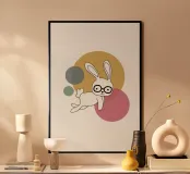 Illustrazione di un simpatico coniglio che salta nello spazio. "Castor" fa parte della collezione Space Rabbits.
