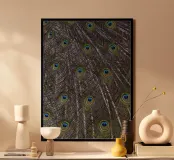 Splendide piume di pavone - Un tocco di eleganza reale poster con telaio in legno