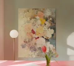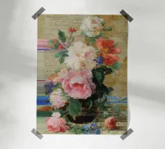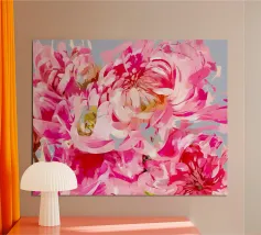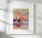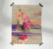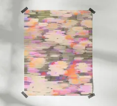 Questa vibrante arte digitale astratta combina colori brillanti e texture glitterate ispirate a motivi botanici. Le strisce orizzontali in rosa, arancione, viola e verde donano nuova energia a qualsiasi spazio abitativo e celebrano la bellezza della natura colorata.