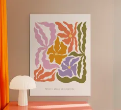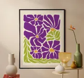 Spring Violet Paradise presenta fiori astratti in rinfrescanti tonalità primaverili. Un design moderno e autentico che celebra la bellezza della natura, portando gioia e risollevando l'umore con le sue tonalità vivaci.