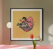Un allegro calamaro rosa tiene in mano un controller di gioco mentre scoppia di gioia attraverso il logo Squid Game. Questo design giocoso ribalta il tono cupo della famosa serie in un tocco di gioco kawaii. Perfetto per i giocatori, gli amanti dei meme e i fan del caos carino con un tocco di cultura pop.