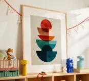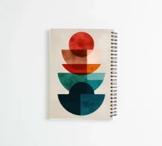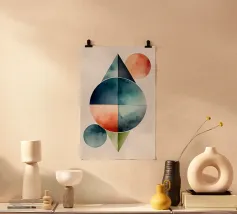Una serena esplorazione della simmetria e dell'armonia dei colori. Questa opera d'arte geometrica astratta presenta forme semicircolari nei ricchi toni della terracotta, dell'ocra, del verde acqua e del blu notte, che simboleggiano equilibrio e unità. La composizione pulita e la calda tavolozza minimalista evocano un'atmosfera moderna ma senza tempo, ideale per gli interni che abbracciano la semplicità, la struttura e la tranquilla raffinatezza.