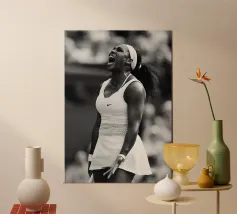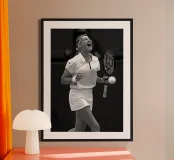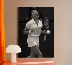 Celebra la leggenda del tennis Steffi Graf con questa stampa artistica incorniciata in bianco e nero. Perfetta per gli amanti del tennis e ideale per decorare il tuo ufficio o la tua camera da letto. Un pezzo d'arte unica per aggiungere stile e ispirazione alla tua casa.
