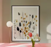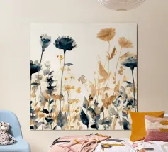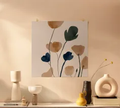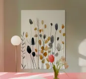 Raffinate forme botaniche si ergono in un ritmo tranquillo: ocra bruciato, grigio fumo e nero morbido che danzano sullo spazio bianco. Questo acquerello minimalista cattura la delicata struttura delle piante secche in una composizione calma e curata. Arioso, elegante e fondato sulla bellezza della moderazione.