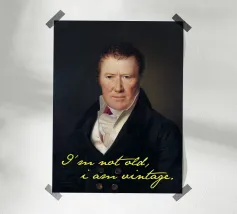 Stampa artistica con cornice in legno dal design vintage che ritrae un ritratto classico con testo ironico. Perfetta per decorare soggiorni, studi o uffici con un tocco di humor e eleganza. Realizzata con materiali di qualità e finiture curate, adatta a chi cerca un complemento d'arredo originale senza personalizzazione.