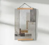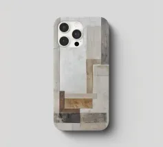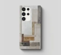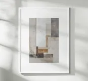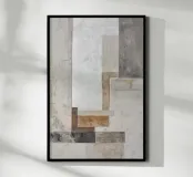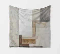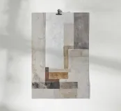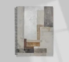 Diese abstrakte Gestaltung verbindet industrielle Elemente mit erdigen Farben und minimalistischen Formen. Überlagerte Texturen aus Papier und Baumaterialien, kombiniert mit Pinselstrichen, schaffen eine faszinierende Tiefe und reflektieren den Boho-Stil in zeitgenössischem Design.