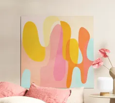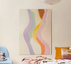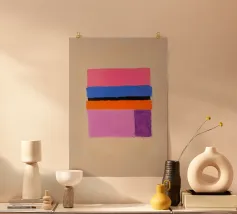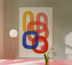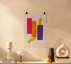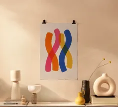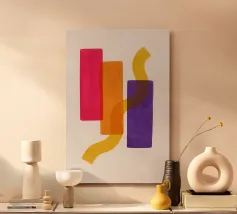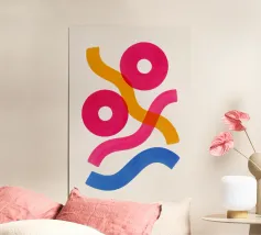 Questo poster moderno combina tre barre colorate verticali con una linea curva che si snoda attraverso l'immagine. La geometria chiara incontra il movimento organico, i colori - rosa, arancione, giallo e viola - creano profondità ed energia. Ideale per ambienti creativi, concetti di vita moderni e amanti del design che desiderano combinare forme chiare e leggerezza.