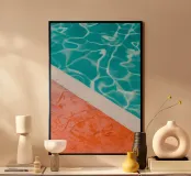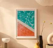 This minimalist poolside art print captures the serene beauty of a turquoise pool, with the bright orange contrast of the edge and the soft, tranquil water. The simplicity of the design evokes relaxation and calm, making it an ideal piece for creating a peaceful, modern atmosphere. The clean lines and vibrant colors make it a perfect addition to any contemporary space. Ideal for modern living rooms, bedrooms, or offices, this artwork will bring a refreshing, stylish touch to your home.