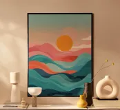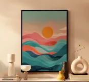 Scopri la bellezza della natura con la nostra stampa artistica incorniciata "Sun Over Soft Waves". Perfetta per ogni ambiente, offre un'atmosfera tranquilla e stilosa, ideale per la tua casa o il tuo ufficio. Questa opera d'arte dal design astratto si adatta a qualsiasi arredamento, rendendola un'ottima scelta per un regalo di nuova casa o per chi ama la decorazione minimalista.
