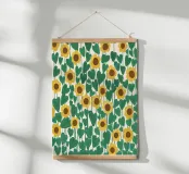 Porta un tocco di freschezza e allegria a casa tua con questa splendida stampa artistica incorniciata in legno “Sunflowers” di GigiRosado. Perfetta per arredare la tua stanza, la cucina o anche un’area di lavoro, i girasoli vivaci e gli cuori verdi portano un’energia positiva e luminosità in ogni angolo. La scelta ideale per gli amanti della natura e degli stili giovanili, questa piccola opera d'arte è perfetta anche come regalo per chi ama decorare con originalità. Facile da appendere, aggiungerà un tocco personale e colorato a qualsiasi ambiente, rendendo ogni spazio meno anonimo e più accogliente.