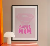 Porta un tocco di affetto e riconoscimento nella tua casa con questa stampa artistica incorniciata "Super Mom". Perfetta per decorare la camera da letto o lo spazio dedicato alle mamme, questa opera celebra il ruolo unico delle madri.