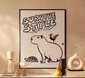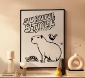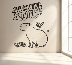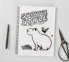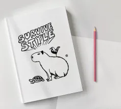 I capibara si distinguono per la loro natura calma e il loro buon umore con gli altri animali. Il disegno è accompagnato da un uccello e da una tartaruga, con una tipografia divertente che si abbina ai giorni.