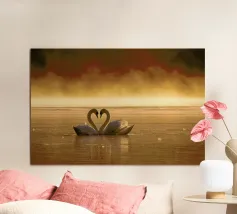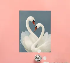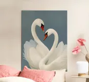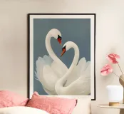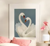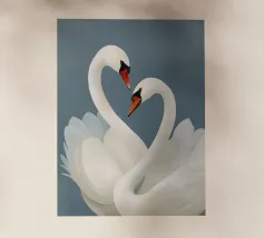 Aggiungi un tocco di eleganza al tuo spazio con questa stampa artistica in cornice di legno raffigurante una coppia di cigni. Perfetta per la tua camera da letto o soggiorno, questa opera d'arte porta serenità e bellezza ovunque venga esposta.