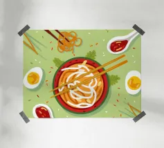 Assaporate la bontà dei noodles in ogni boccone! Questo disegno presenta tagliatelle deliziose e appetitose, perfette per i buongustai e gli appassionati di noodle.