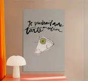 Scopri “Tarte”, un'opera dell'artista Waltraud Rieken che porta un tocco di originalità e allegria in ogni ambiente. Questa stampa incorniciata in legno da 10 x 15 cm è perfetta per gli amanti dell'arte e delle citazioni divertenti. La combinazione di design moderno e l'illustrazione di una fetta di torta al limone la rende un ottimo regalo per gli amici, una decorazione unica per la cucina o per vivacizzare il tuo spazio di lavoro. Facile da appendere e altamente versatile, si adatta perfettamente a stanze contemporanee o a spazi più tradizionali, aggiungendo un pizzico di dolcezza e umorismo. Non perdere l'opportunità di portare a casa questa deliziosa opera d'arte!