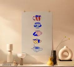 Esplora il mondo delle tazzine con questo poster vivace e colorato, perfetto per aggiungere un tocco di allegria alla tua cucina o sala da pranzo. Un'opera d'arte che cattura l'essenza delle tazzine in un design creativo, ideale per gli amanti del caffè e del tè.