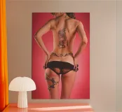 A lingerie model with a tattooed back