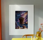 caffè tazza di caffè chicchi di caffè galassia cosmico stelle pianeti oggetti galleggianti disco volante spazio esterno cielo notturno tema celeste bevanda calda vapore sfidare la gravità cosmo cielo universo macinare fermentare