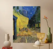 Terrazza del caffè di notte di Vincent van Gogh - Stampa del caffè di notte stellata, capolavoro impressionista, Portate il fascino senza tempo e il colore vibrante nel vostro spazio con Café Terrace at Night (1888) di Vincent van Gogh. Questo amato capolavoro cattura un caffè luminoso sotto un cielo stellato ad Arles, in Francia - pieno di calore, vita e l'atmosfera sognante che definisce lo stile iconico di Van Gogh. Conosciuto come un precursore de La notte stellata, questa riproduzione ad alta risoluzione celebra il contrasto tra la luce dorata della lampada e il blu profondo della notte, rendendolo un punto focale straordinario per qualsiasi casa, studio o spazio a tema caffè.