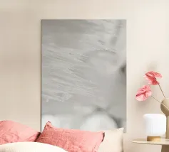 Questo motivo minimalista in delicate tonalità bianche colpisce per le sue strutture morbide e fluide che ricordano la luce che cade e il movimento. Il design emana calma ed eleganza, perfetto per gli spazi abitativi moderni. È perfetto su murales, cuscini o tende da doccia e dona un tocco di semplicità e stile a qualsiasi ambiente. Ideale per gli amanti dell'arte che si ispirano ai dettagli astratti.